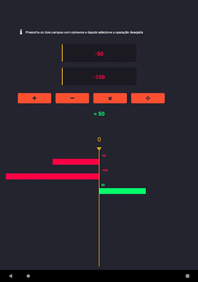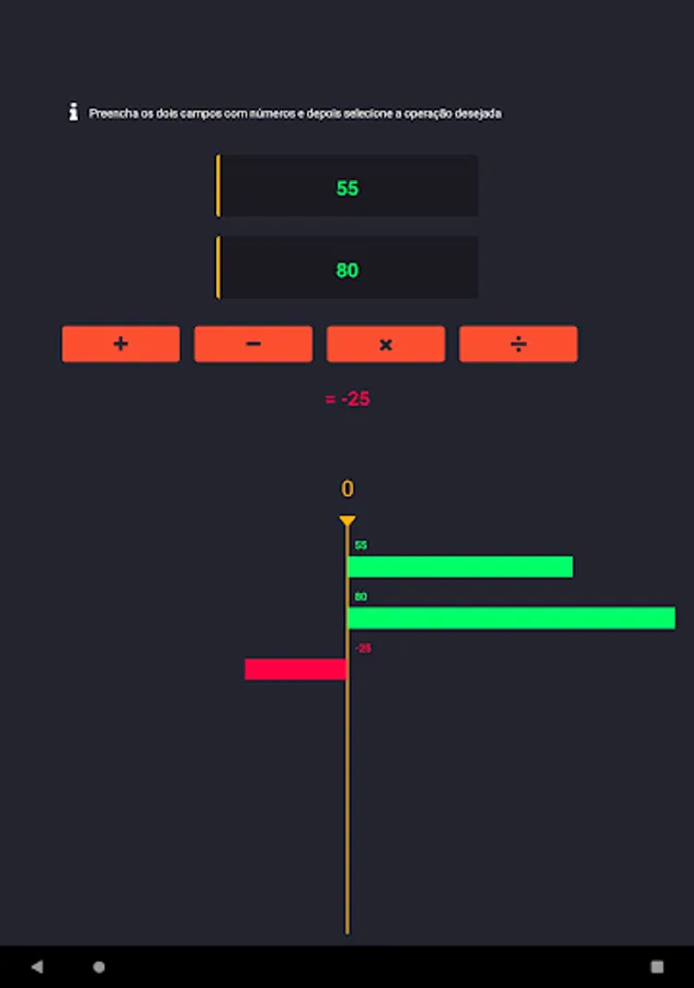 Using graphics, the Visual Calculator App provides a visual representation of basic mathematical operations and how they change with negative values. The App also allows the entry of negative values, unlike the mobile's native calculator.