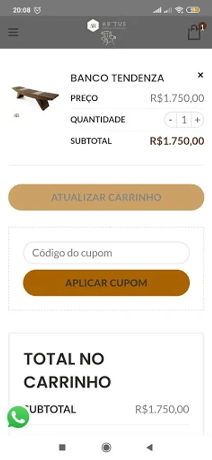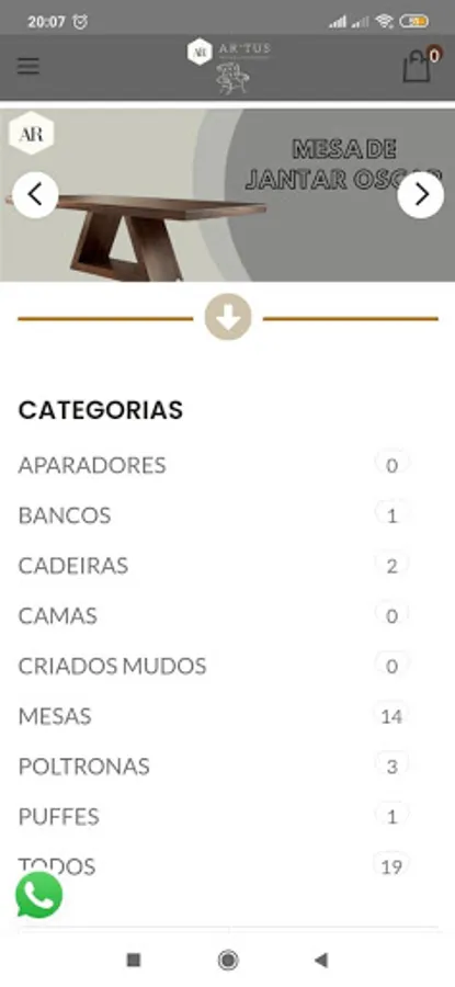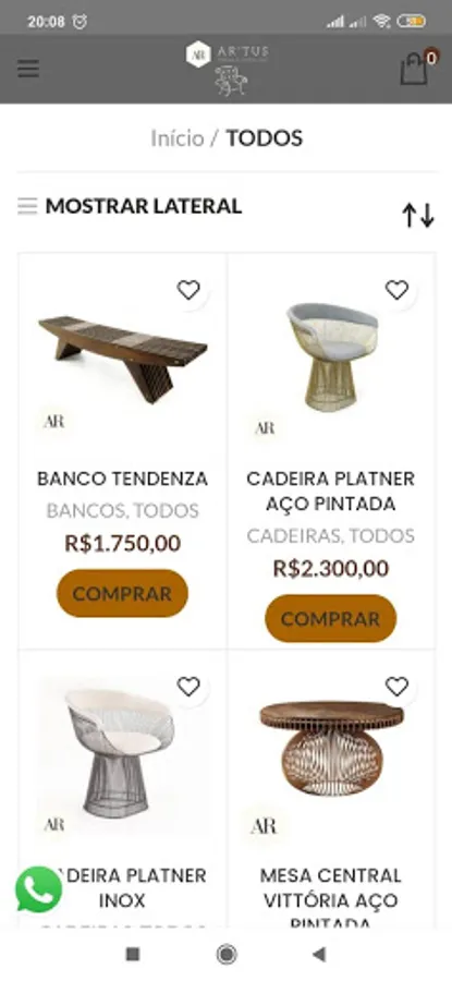 Online application application of the company AR'tus Furniture and decoration.