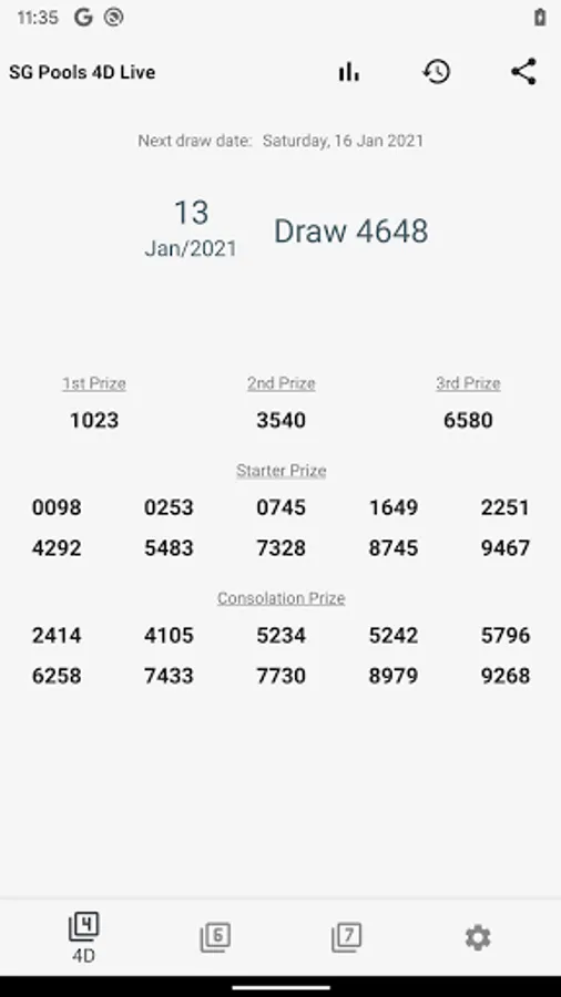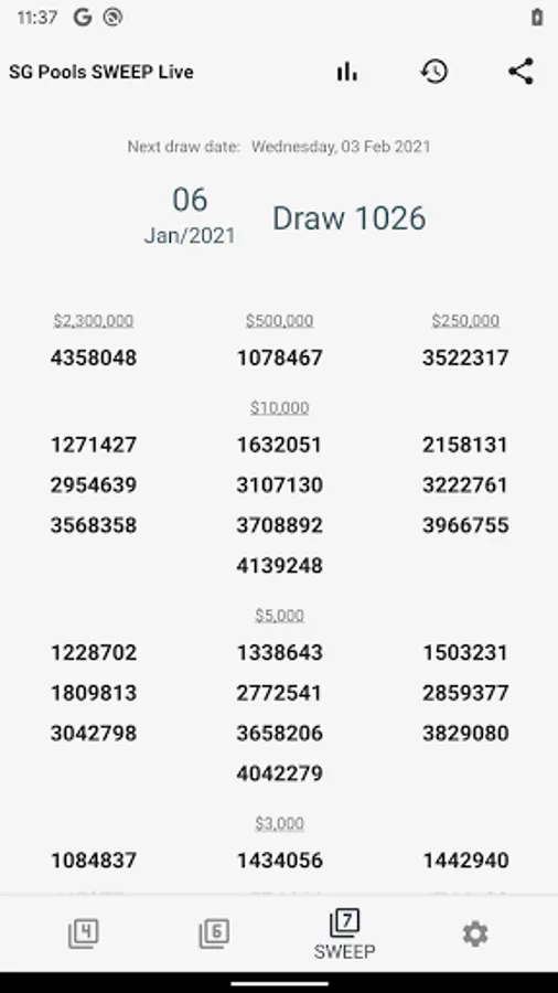 Get the latest live result for Singapore Lottery 4D, TOTO and SWEEP.
