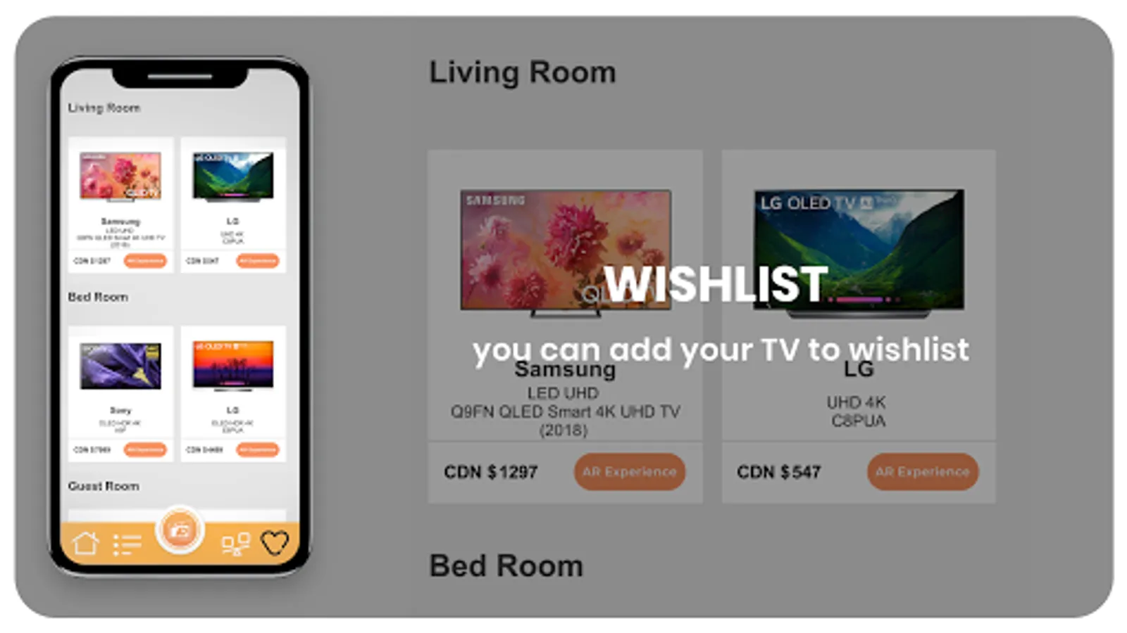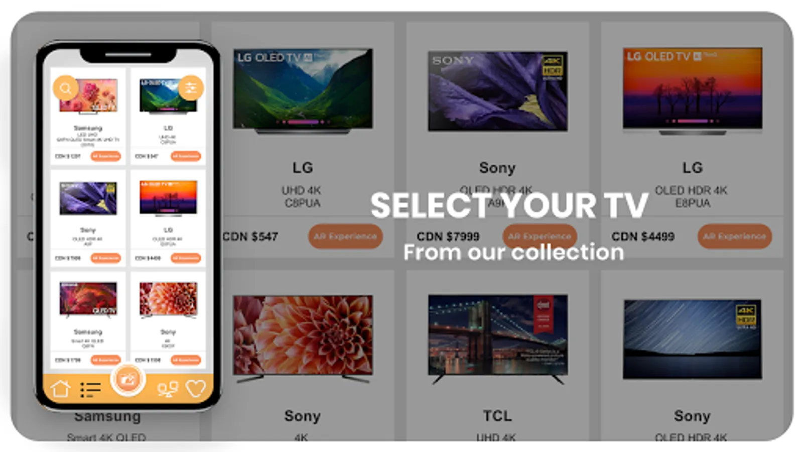 • Use our augmented reality technology to simply place TVs of choice in the exact areas of your house, and in the right scale.