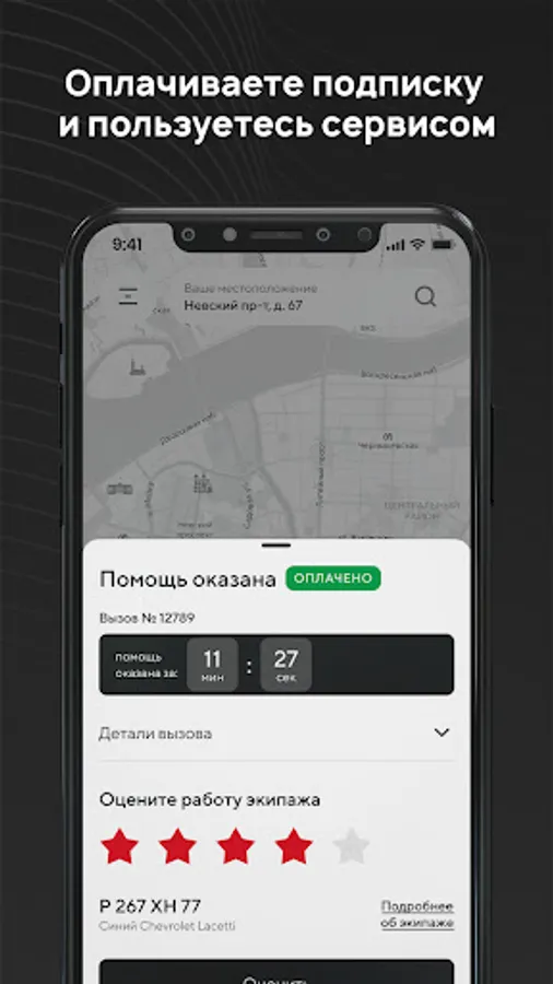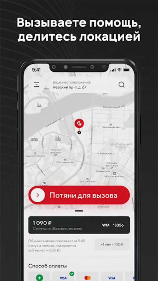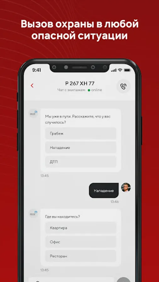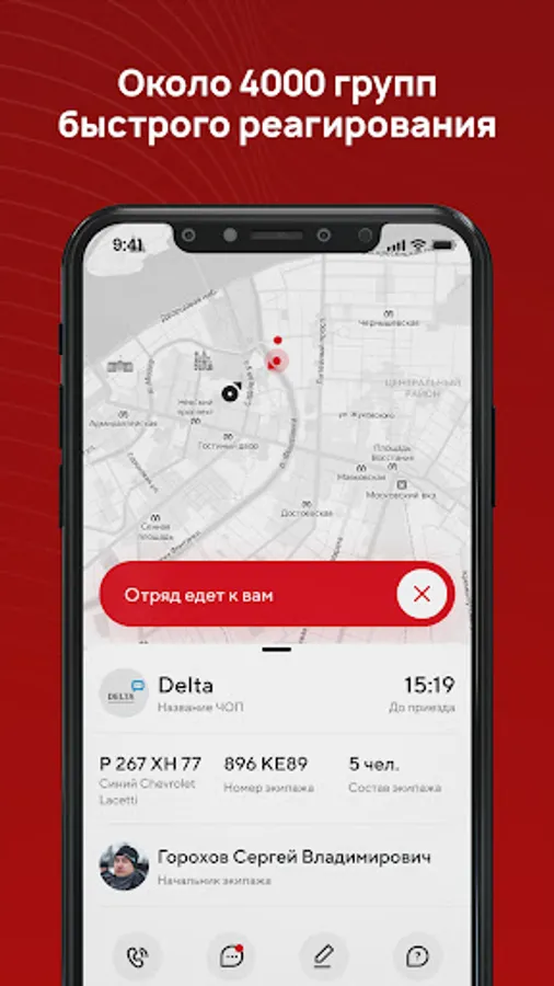 Теперь получить помощь и защитить близких в опасной ситуации можно в одно касание. Вызовите группу быстрого реагирования, поделитесь локацией, и ближайший к вам экипаж приедет в течение 3-5 минут. Мы реагируем быстрее, чем 112 и экстренный вызов!