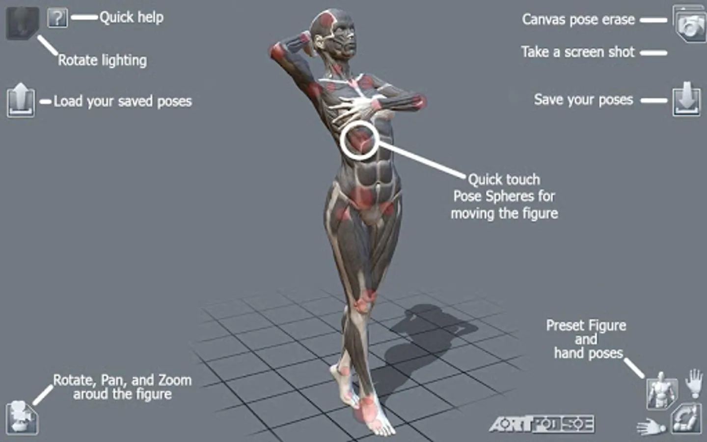 ArtPose is a fun and artistic app for posing the female figure. Create fast and dynamic poses in minutes. Quickly flesh out an ideal pose, then take a screen shot to use in your favorite art apps. 60 preset starter poses make getting started a snap. ArtPose is about keeping you in the moment of creation.
