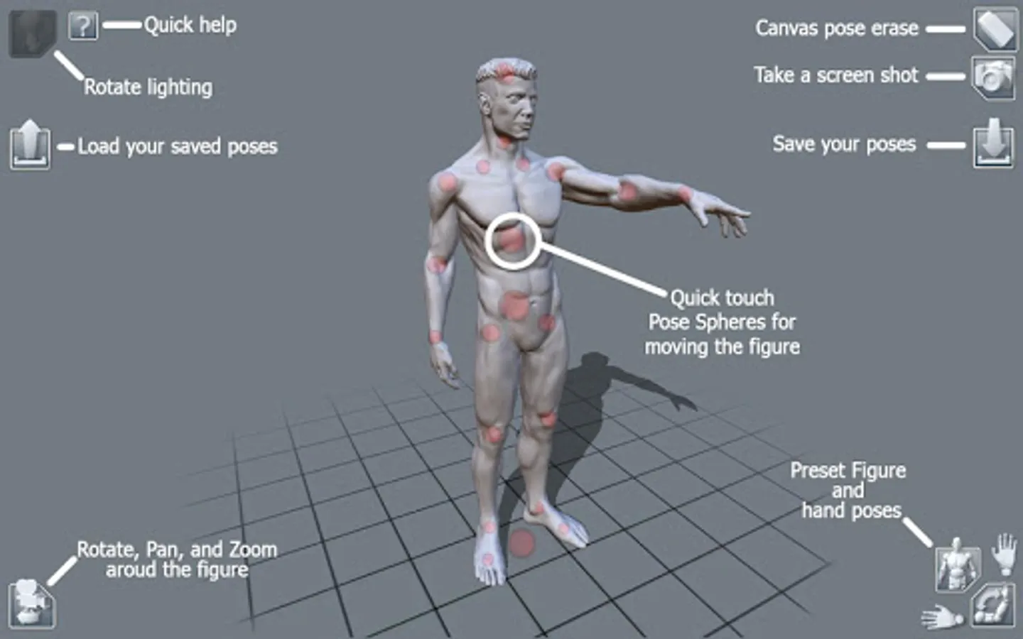 ArtPose is a fun and artistic app for posing the male figure. Create fast and dynamic poses in minutes. Quickly flesh out an ideal pose, then take a screen shot to use in your favorite art apps. 60 preset starter poses make getting started a snap. ArtPose is about keeping you in the moment of creation.