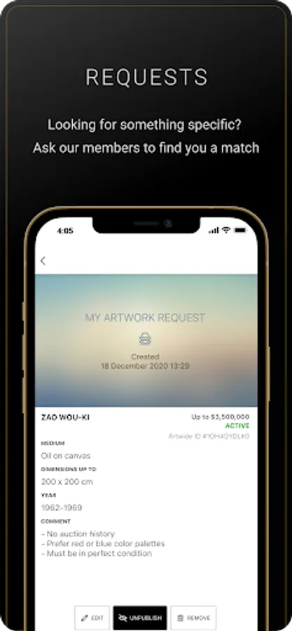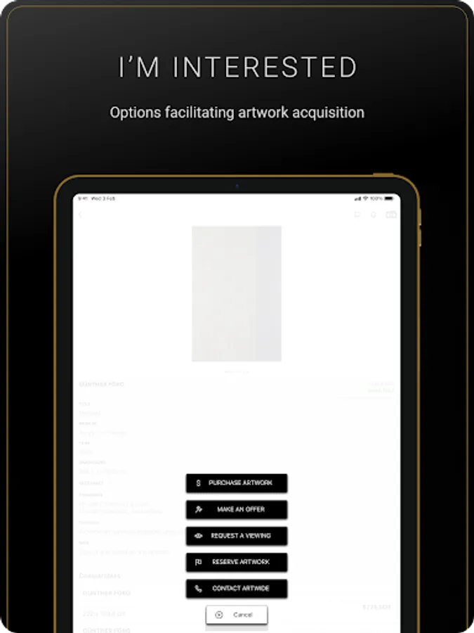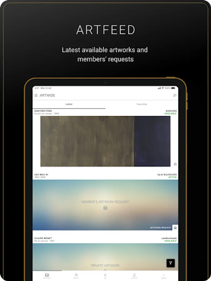 Artwide provides an app to buy and sell artworks to an identified and vetted community of members, where each member is verified by the Artwide team.