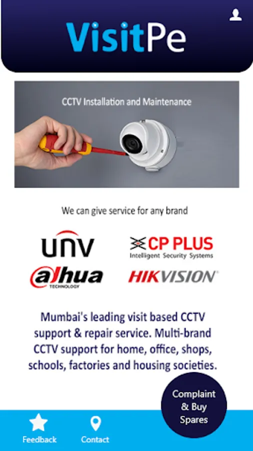 Repair Services: VisitPe is a CCTV repair service which offers Services at REASONABLE Charges for all brands like Hikvision, CP Plus, Dahua, Uniview, Matrix, Active Pixel, Securus, Zicom or any other brand. This service is launched by DIGICOM SEC (CCTV experts since past 22 years), for the retail segment like Jewellery Stores, Grocery Stores, Garment stores, Medical Stores, Stationery stores, Restaurants, Lounges, Clinics, Salons, Cake Shops, CA offices, Dentists, Baggage Stores, Hardware stores, Plywood Shops, Optical Shops, Dryfruit stores, Snack bars etc. who do not need costly AMC services.