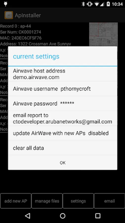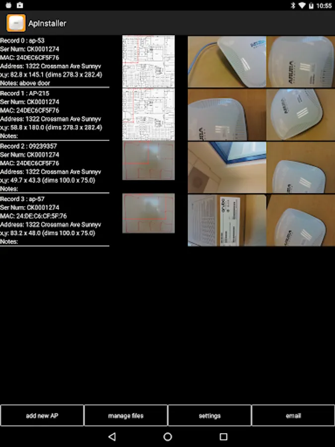 At the end of an installation run, the list of AP information is emailed as a spreadsheet and a list of images: this can be archived as a permanent record and proof of each AP installed.