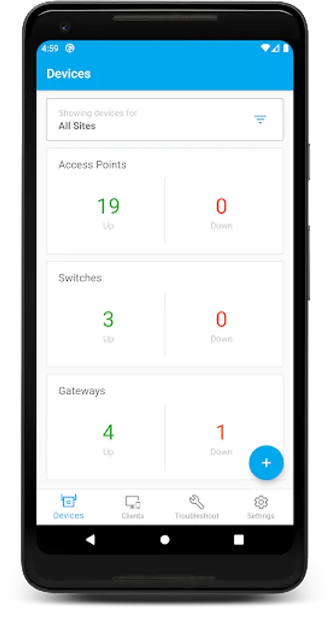 This free app lets you easily Onboard and monitor devices. Device on-boarding is simplified - simply scan the barcode of your device - IAP / Switch and add it to your network.