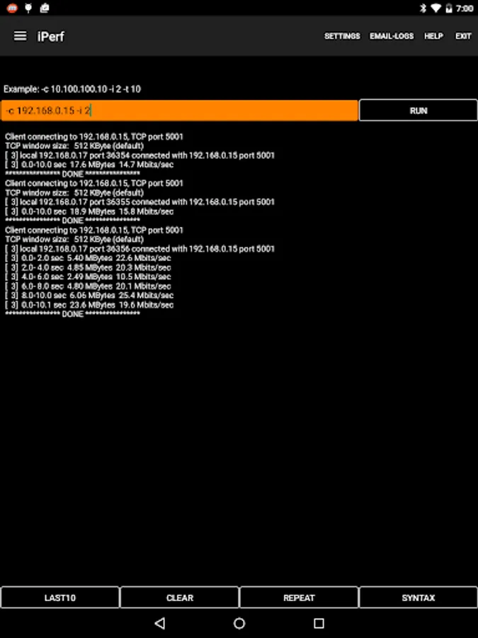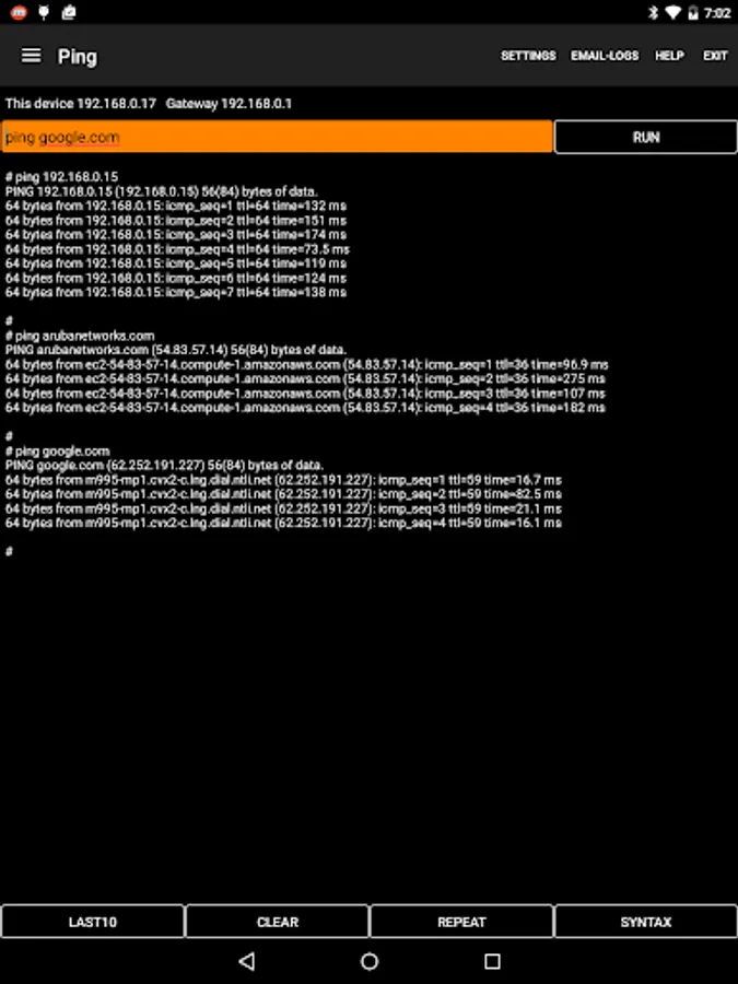 • Android versions of iPerf, Ping, DNS and mDNS provide network testing functionality.