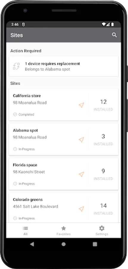 With Aruba Installer, your installers can see the different Sites they have to bring up.