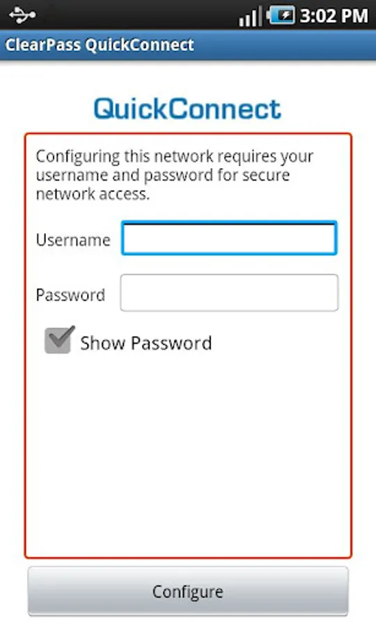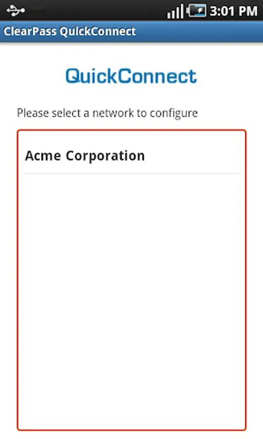 This application must be used in conjunction with ClearPass QuickConnect server side software deployed in your organization. After installing the application navigate to the URL provided by your organization to start automatic configuration of your device.
