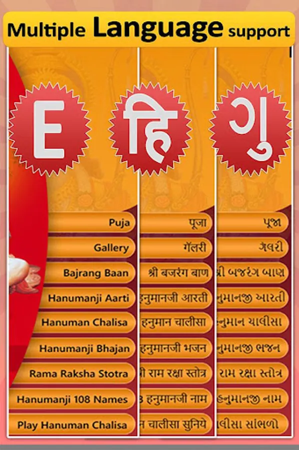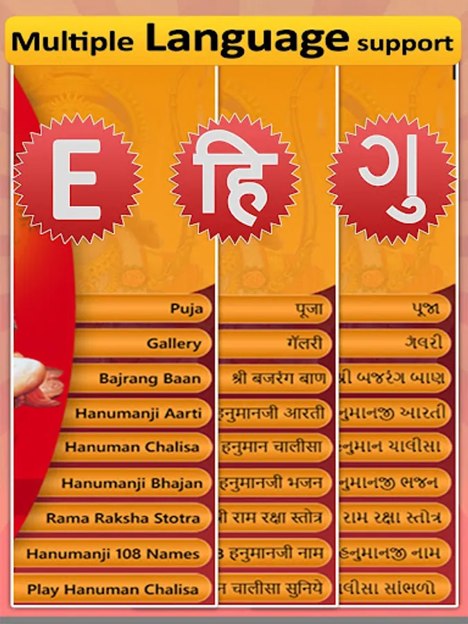 Contains Hanuman Chalisa, bajrag ban, Bhajans, 108 Names , aarti, pooja and photo gallery , live wallpaper.