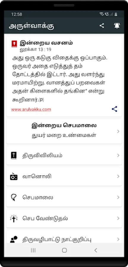 Arulvakku is the first in the internet media that serves the Tamil speaking Christian community across the world, by giving Holy Bible online, Online Radio and Online Bible Study. Easy Bible reading and searching, receiving daily emails with daily liturgical readings and reflections both in English and Tamil, Rosaries and prayers, videos and hymns are some of the resources available online at arulvakku.com for Tamil Christians.