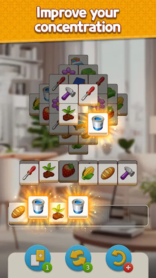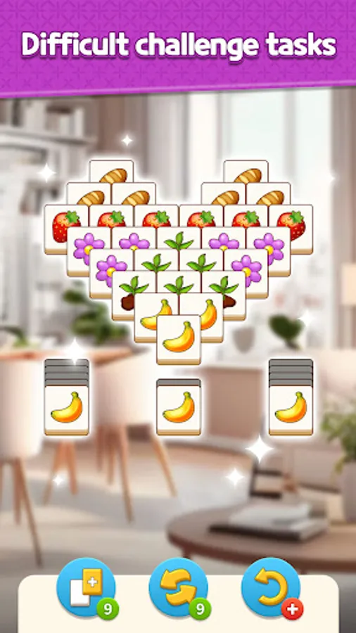 I hope you have the opportunity to become smarter while playing the tile match Mahjong game. As you clear levels, more challenging puzzle difficulties await you. Relax and take a break while constantly being engaged in tile match and decorating your own room!