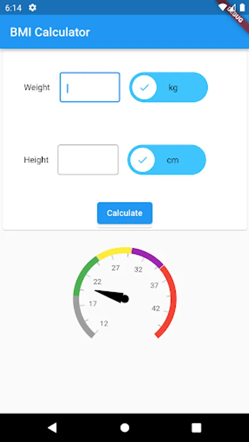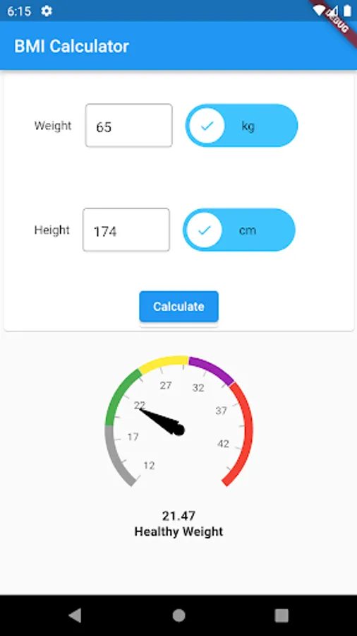 This app calculates Body Mass Index (BMI) using user's Weight and height. It also calculates ideal weight for a given height.
