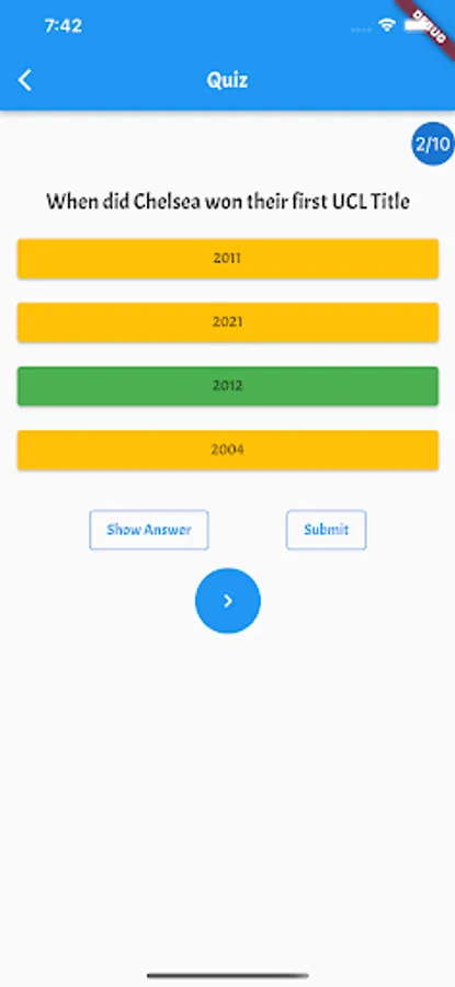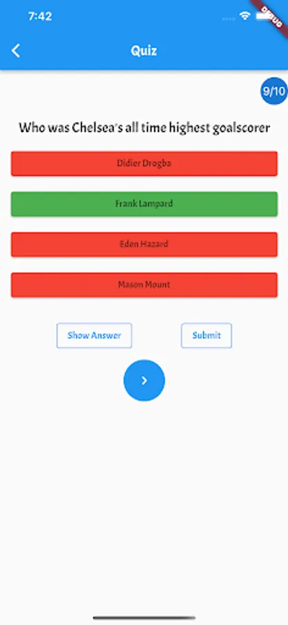 This app contains questions about Chelsea Football Club in a quiz format. It contains 50 questions