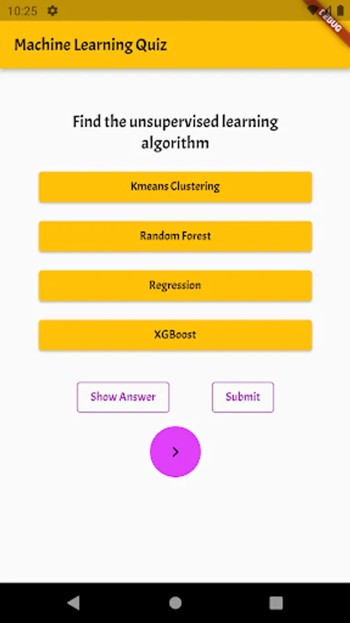 This app contains Machine Learning Questions in a Quiz Format. There will be 50 questions in this app.