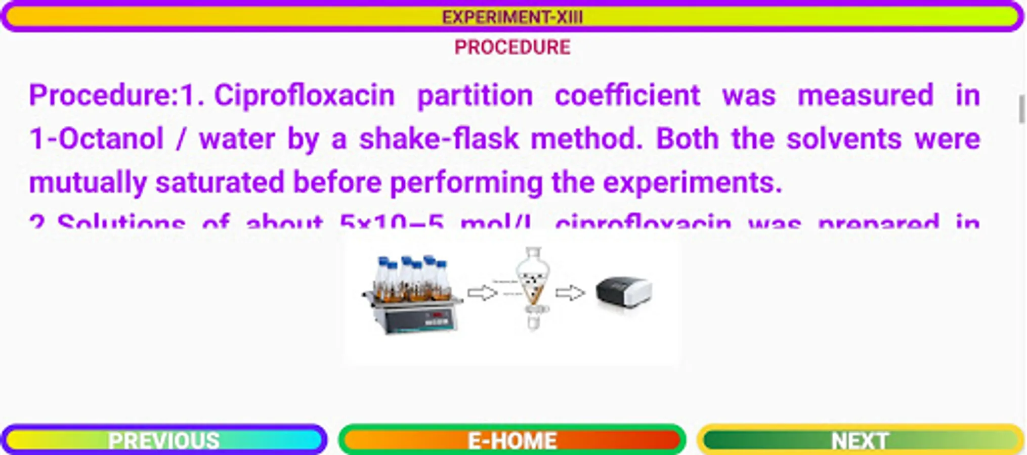 In this app we will learn, how we carried out the Medicinal Chemistry-I practical in laboratory with safety. This app also give general information about safety and precautions, laboratory glassware’s and equipment’s with pictorial representation. This application guides the students to perform the Medicinal Chemistry-I practical in a simple and easy manner.