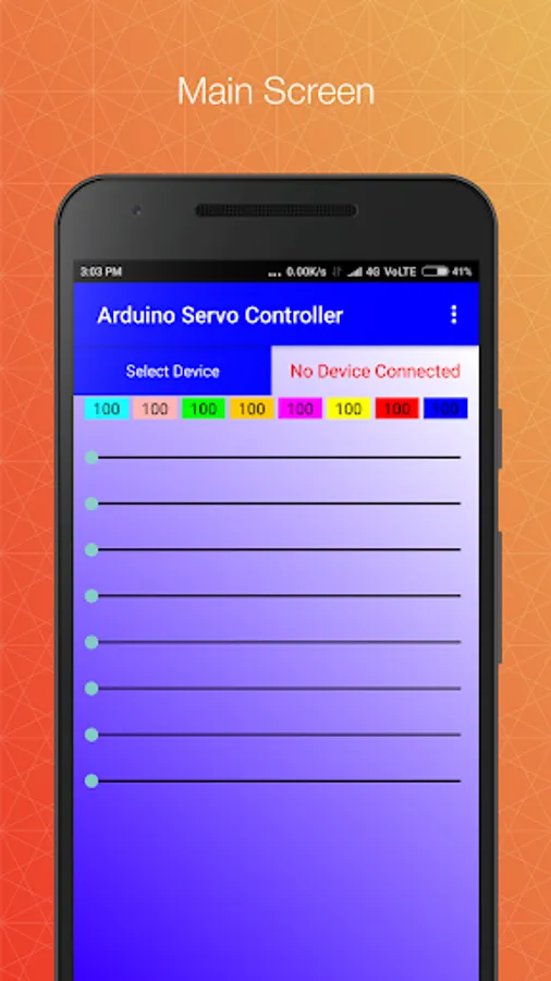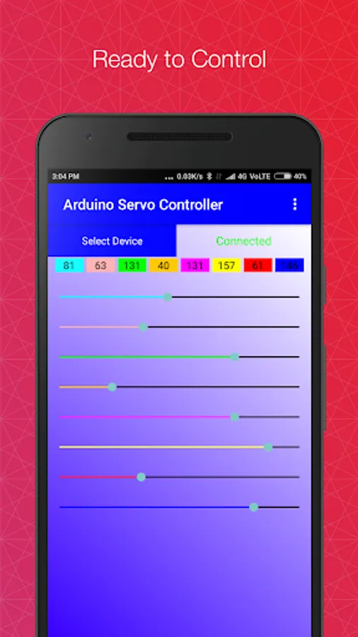 This application can control upto 8 servo motors on Arduino board from android device via bluetooth