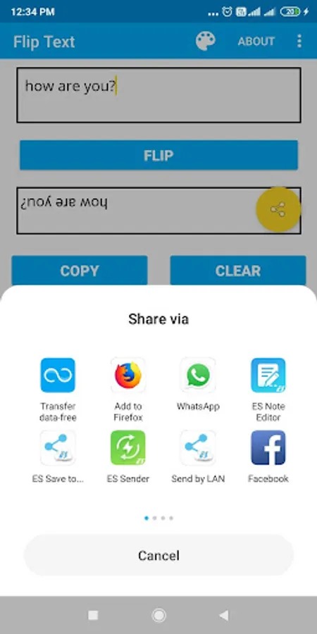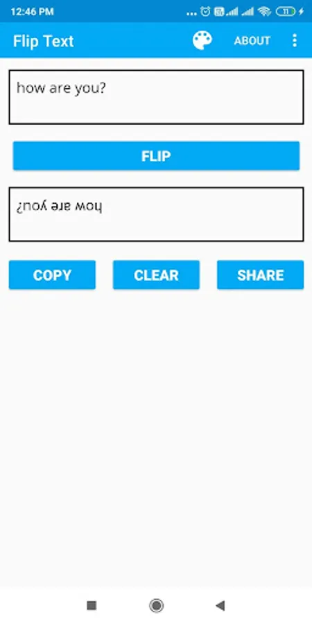 You can directly Share flipped text via SMS or on social media like WhatsApp, Wechat, facebook, tweeter, Instagram etc or you can copy the text to clipboard to use it in any other app