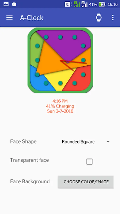 * More shapes: Choose from Round, Square and Rounded square shape for clock.
