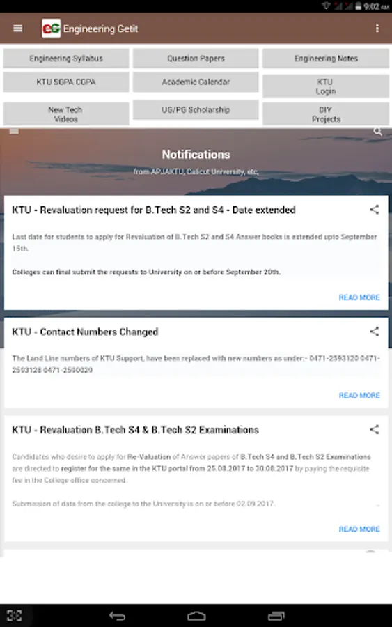 Notifications - To get Notifications related to Exam Dates, Time Tables, Events in University, Results, etc., from APJ AKTU, Calicut University, etc.