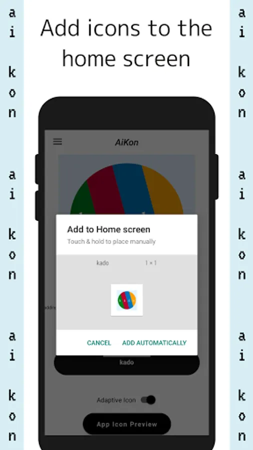 Test and preview your android app icons with AiKon. AiKon lets you make a home screen shortcut to help you in previewing your icon.