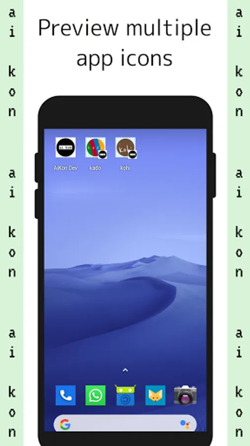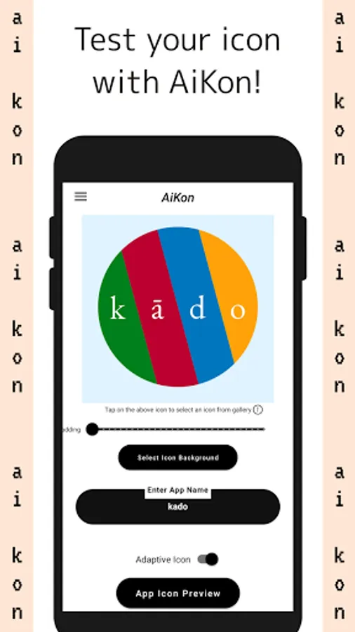 Test and preview your android app icons with AiKon. AiKon lets you make a home screen shortcut to help you in previewing your icon.