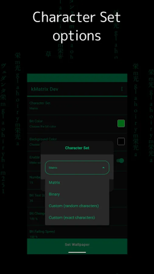 - Preview and set Matrix live wallpaper