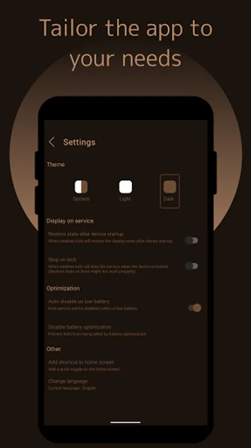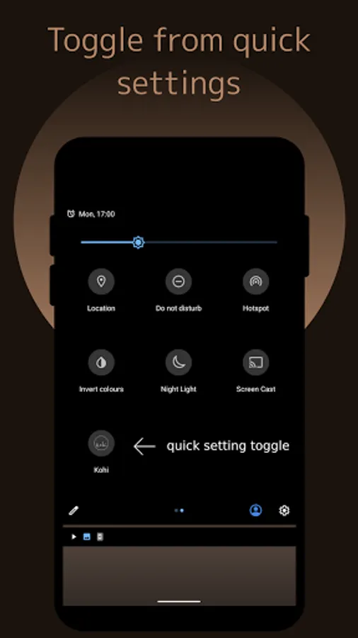 - Direct toggle via quick settings (add Kohi by editing the quick settings menu)