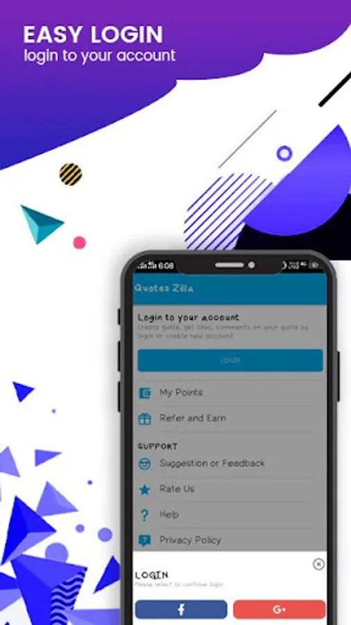 Simple login with facebook and google.