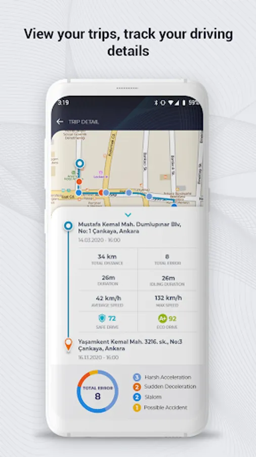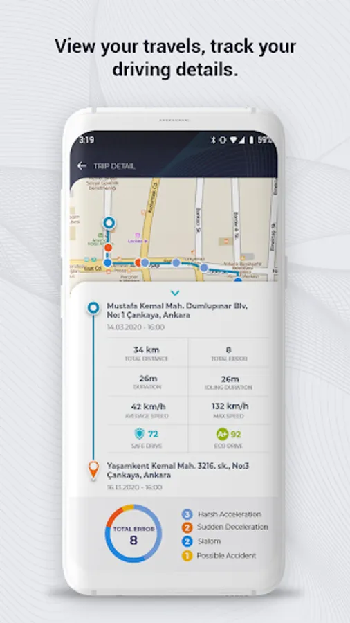 You can see your economic and safe driving score according to your driving data by Arvento Driver.