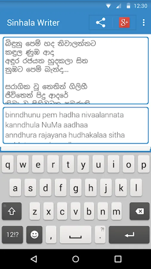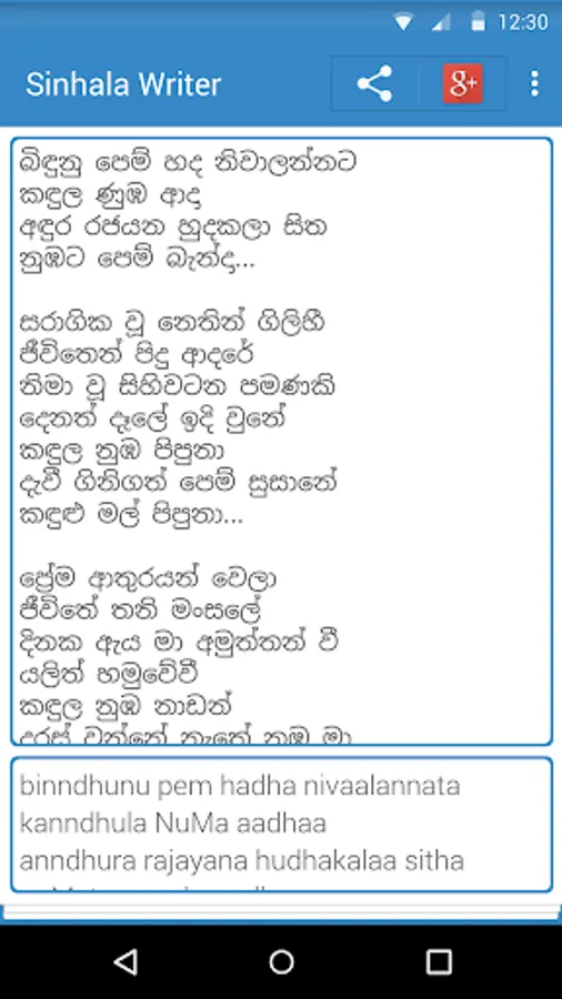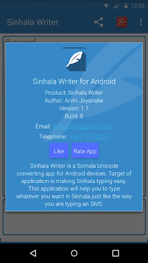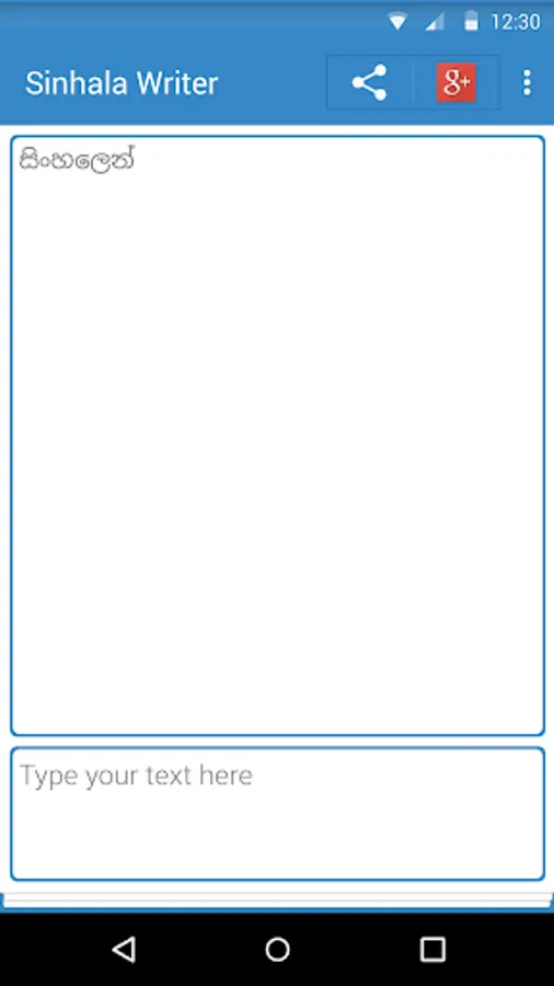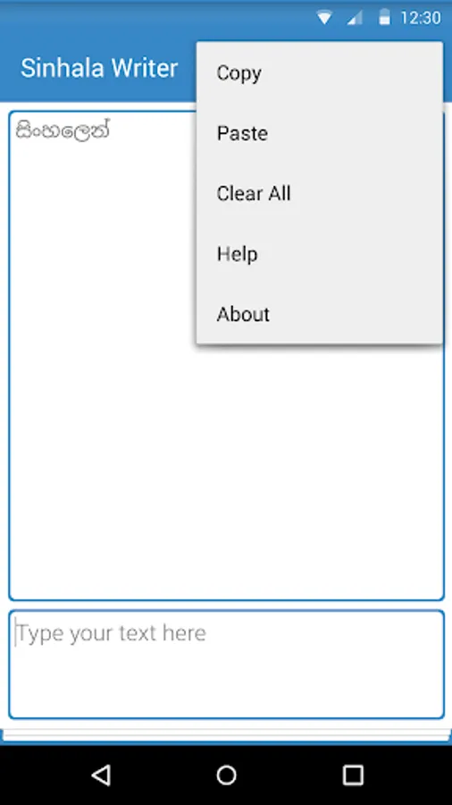 Sinhala Writer is a Sinhala Unicode converting app for android devices. Target of application is making Sinhala typing easy. This application will help you to type whatever you want in Sinhala just like you are typing an SMS.