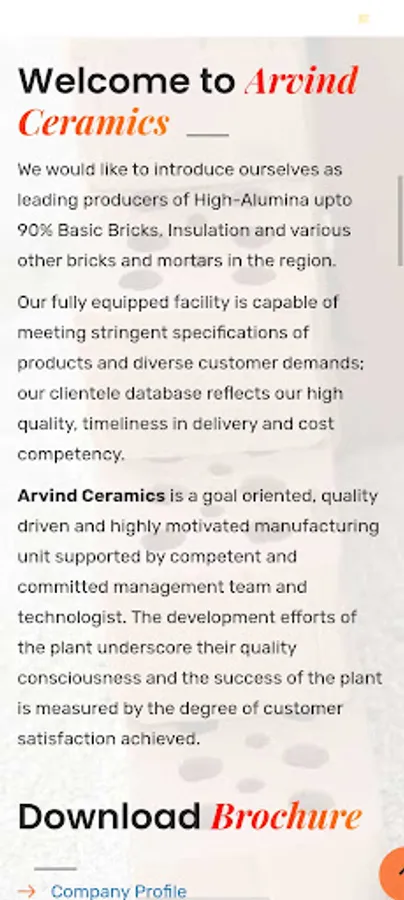 Arvind Ceramics has fully equipped modern plant with initial installed capacity of 6000 MT per annum. It currently successfully caters to the refractory needs of various critical and core industries, such as Ferrous, Non-ferrous, Chemicals, Petro-Chemicals, Refineries, Paper and Glass etc, throughout the country. The high quality timeliness in delivery and cost competency can be well reflected by its clientele database consisting of Iron and Steel giants like, Bhilai Steel Plant, Jindal Steels and Prakash Industries Limited etc.