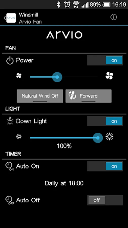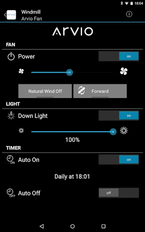 Arvio Fan Remote is an application that can be used to control selected Arvio ceiling fans. With it, you can select speed, adjust light intensity and set timer through your smart phone or tablet device.
