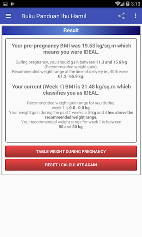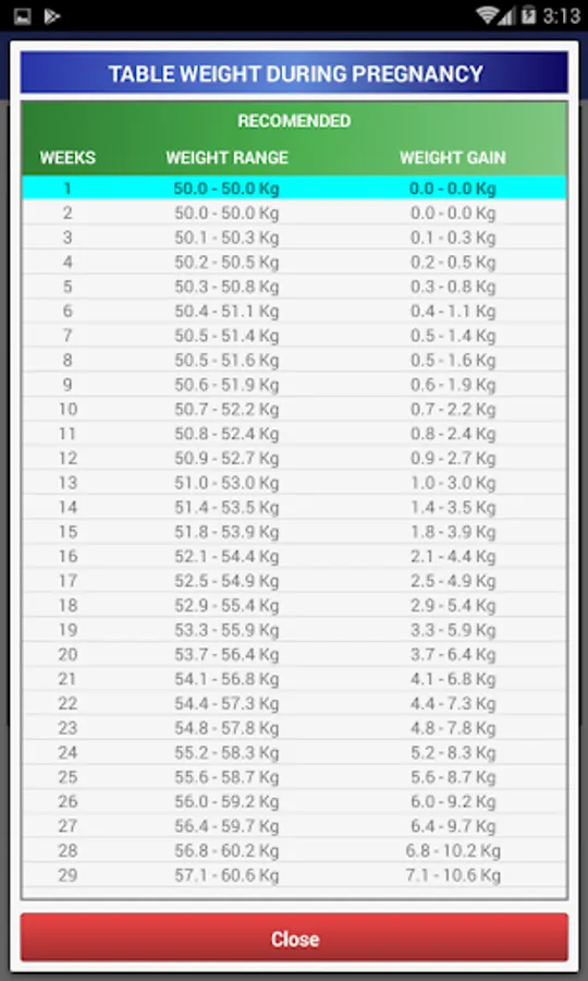 The weight calculator is used to monitor the weight of the mother week by week, so that it complies with recommendations to get the ideal body after delivery.