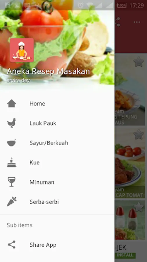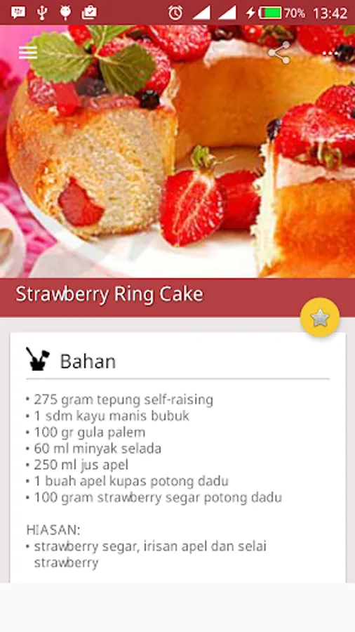 The division of the recipe category, will make you become easier in choosing a recipe that makes comfort. Also equipped with a category of favorite recipes where you can easily store a large selection of recipes that you like into the category of favorite recipes with one click.