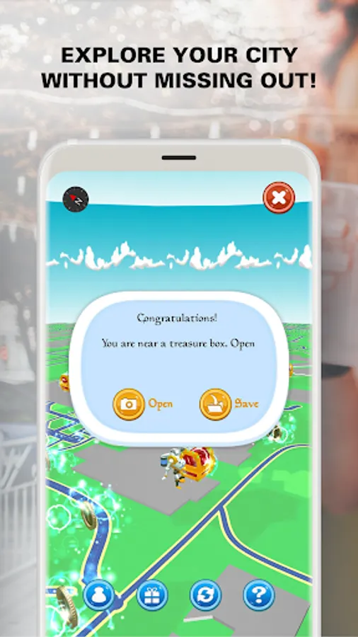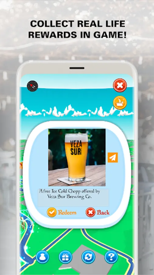 Register ---> Walk around to Collect local treasures ---> Catch them in augmented reality ---> Redeem in Real life