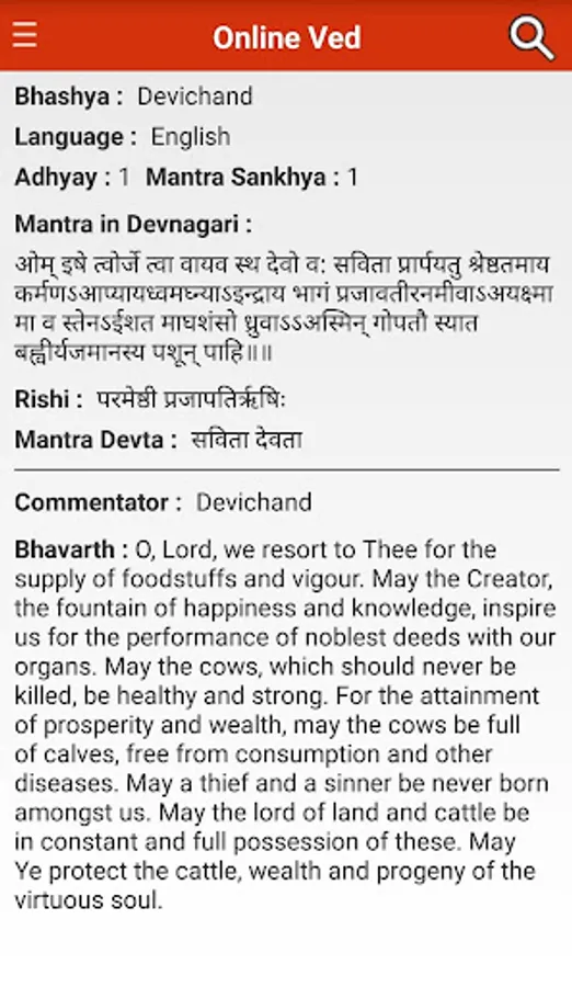 This is the world’s first Ved app in which all the Vedas are in a searchable form. It can be used as a reference for searching desired mantras. This can be done by merely typing in a key word.