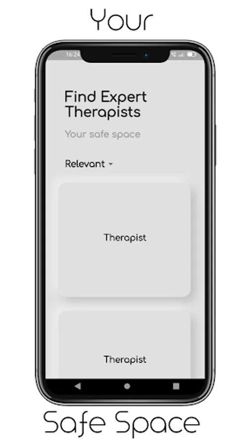 Below the two button interface, there is a color bar which changes color based on how the buttons are pressed with blue representing the positive and red representing the negative. Once you swipe to the left, MindCare takes you to a new interface. In this safe space, we have Professional Therapists who you can reach out to for consulting a therapy session.
