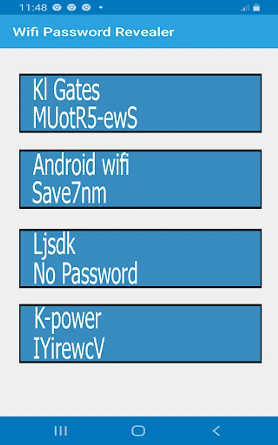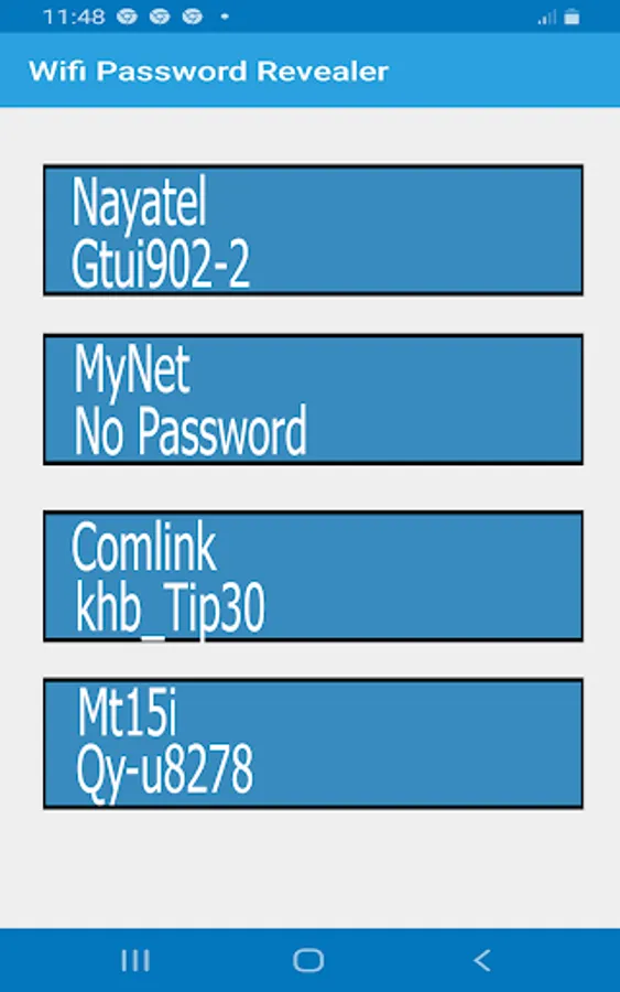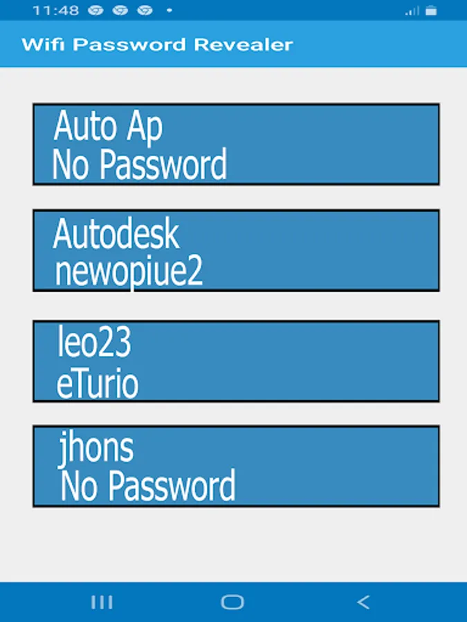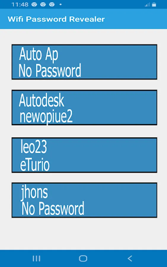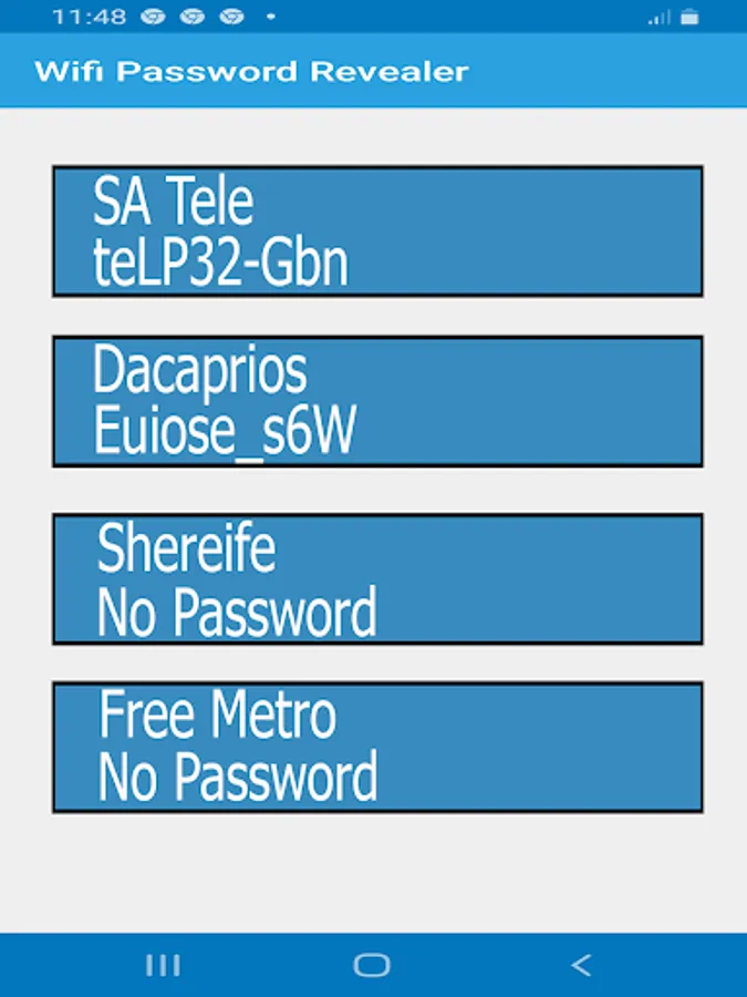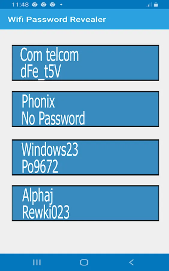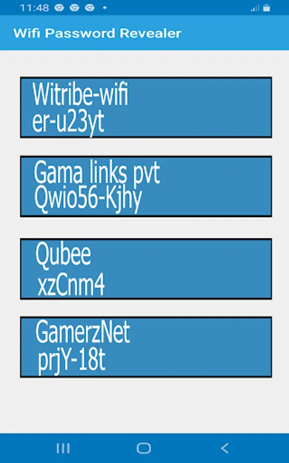 Wifi Password Revealer reveals the Wifi network passwords of wifi networks with which you connected previously. Find wifi password when you are in a hurry which are near you. If you forget wifi passwords and unable to remember them then you can easily able to connect without entering the wifi network password. Wifi Password Revealer can enable you to recover lost wifi pass keys.