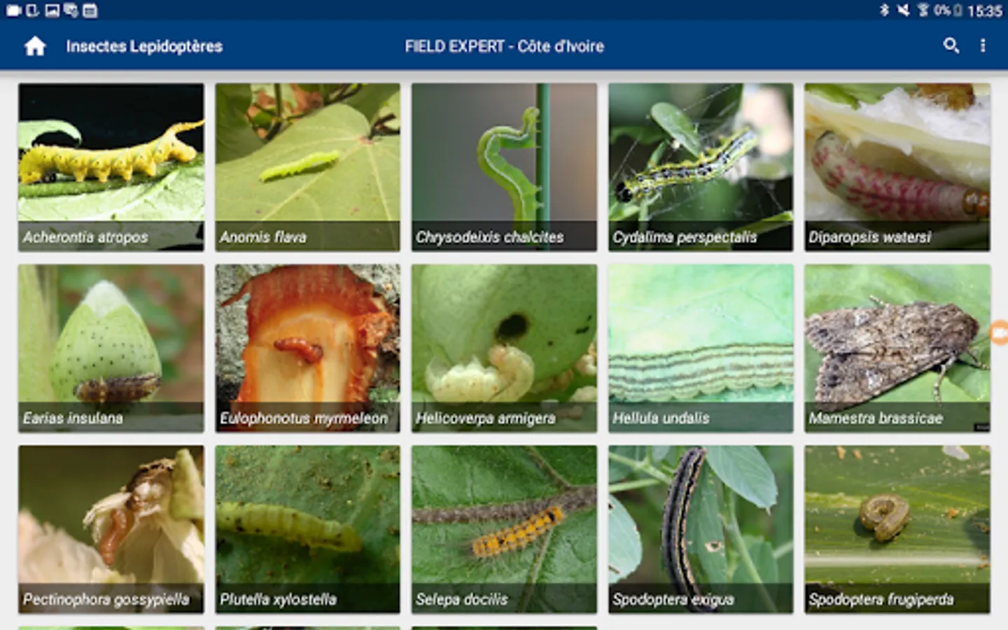 The harmful module provides a very dynamic way of grasping all of the issues, knowing which crops they act on, which periods are at risk of occurrence and what the associated impacts are. For each pest, there is an illustrated technical sheet to understand the technical issues.