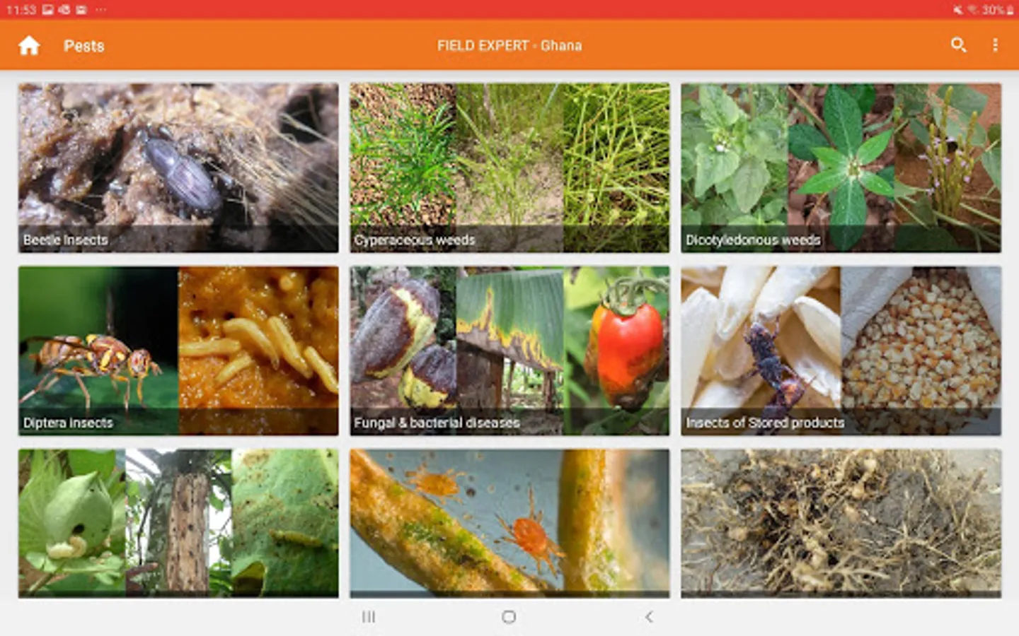 Equipped with a search engine, it is possible to directly access, from the navigation menu, to pest or productt.
