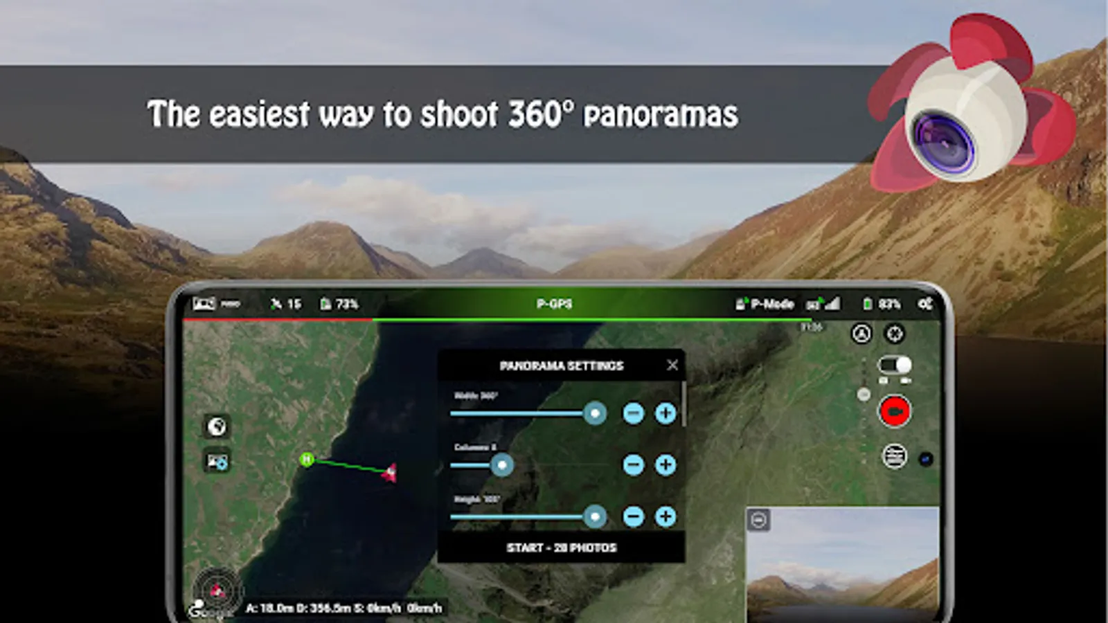 Easily shoot horizontal, vertical and 360 spherical panoramas