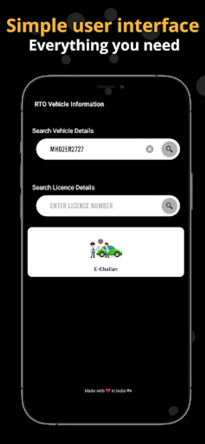 Find complete RTO vehicle information or Indian vehicle details RTO app of any parked, accidental, or theft vehicle by just entering the vehicle registration number. You can get information on ownership, pending traffic e-challans, RC, vehicle type, make, model, insurance, fitness, pollution, black list status, financier (hypothecation) details etc.