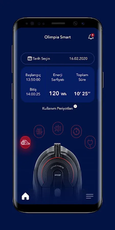 It shows how long you used your broom since the first day you bought it. You can access the sweeping details according to dates on the usage periods screen and you can follow the usage history of your vacuum cleaner at any time.