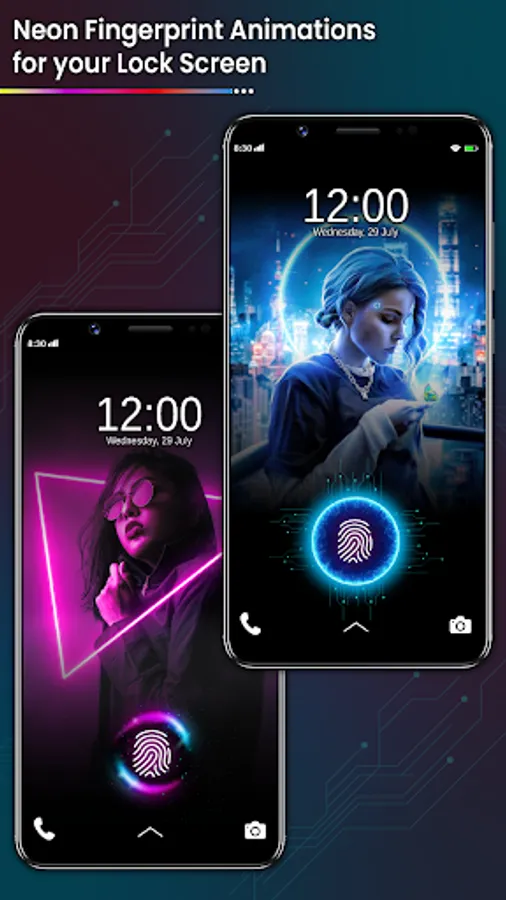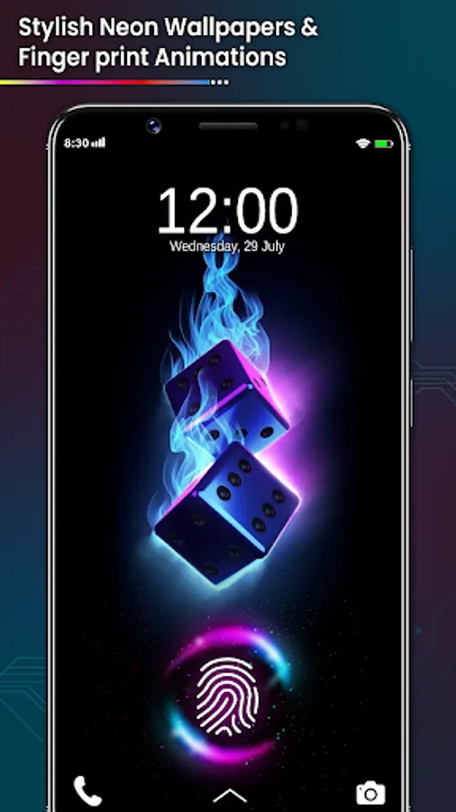 Download Now the "Live Fingerprint Animation App" from play store to make your mobile's lock screen attractive and secure with neon live wallpapers and front screen fingerprint app.