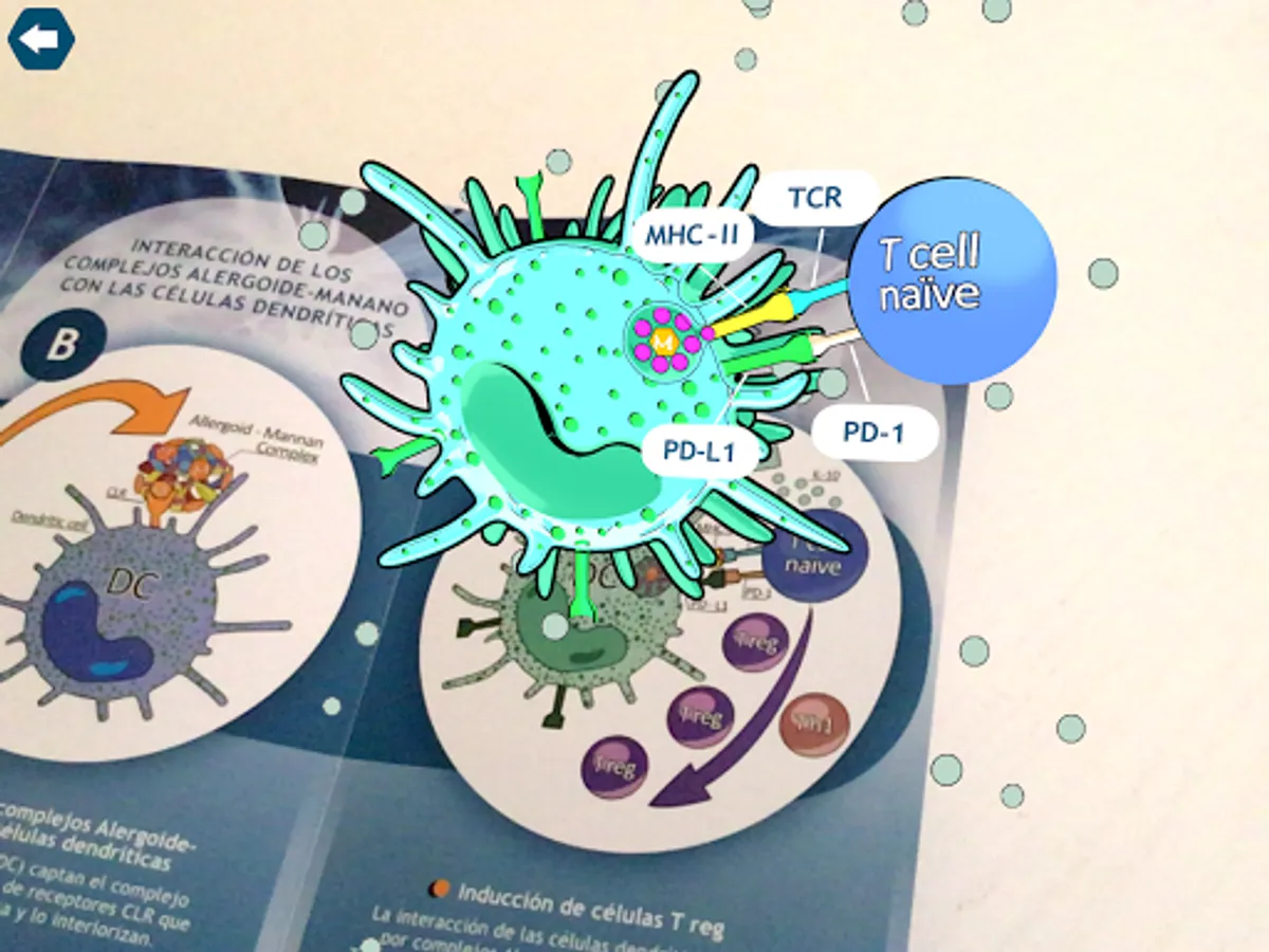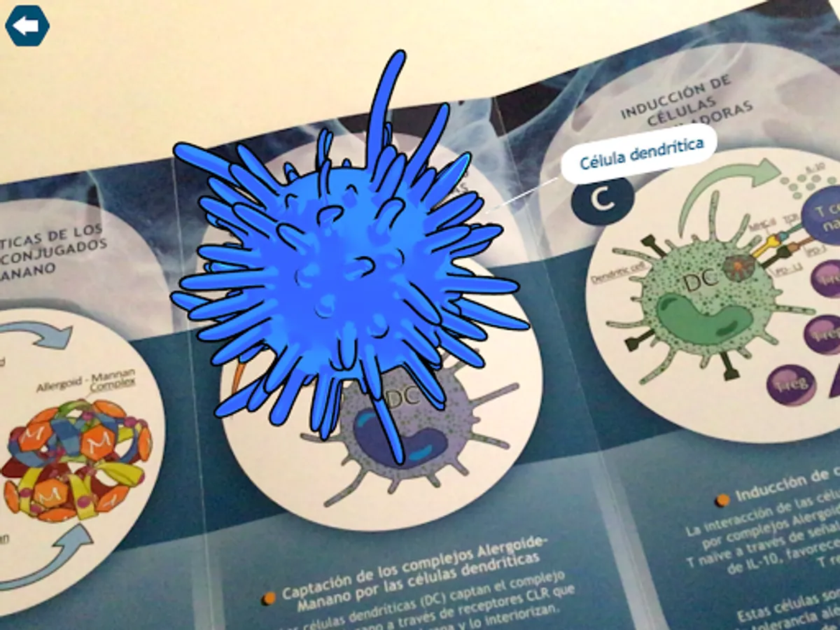 - A presentation through augmented reality of the interaction of the allergoid-mannan complexes with the dendritic cells, detailing each of the phases of this process.