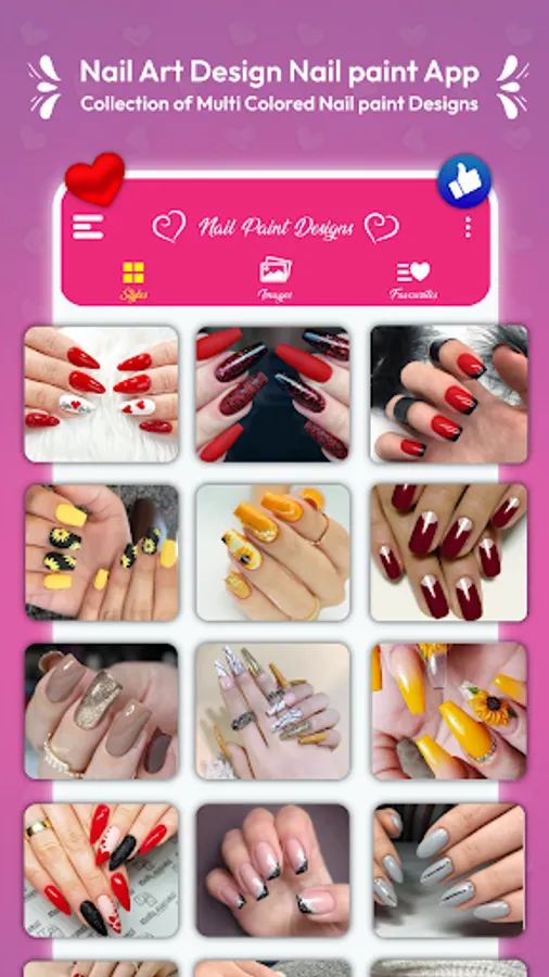 Beautiful and attractive nails are one of the supporting features of a girl's appearance. Nail designs are adapted according to the clothes she wears. In this Nail Art Design : Nails Polish app we provide references of various nail art designs and nail polish ideas with images that you might like.