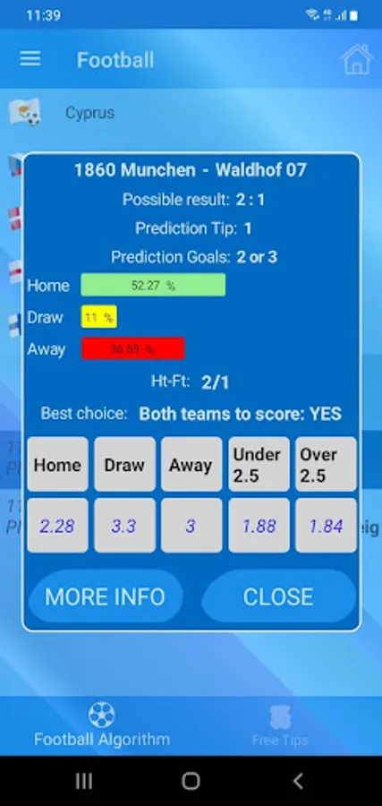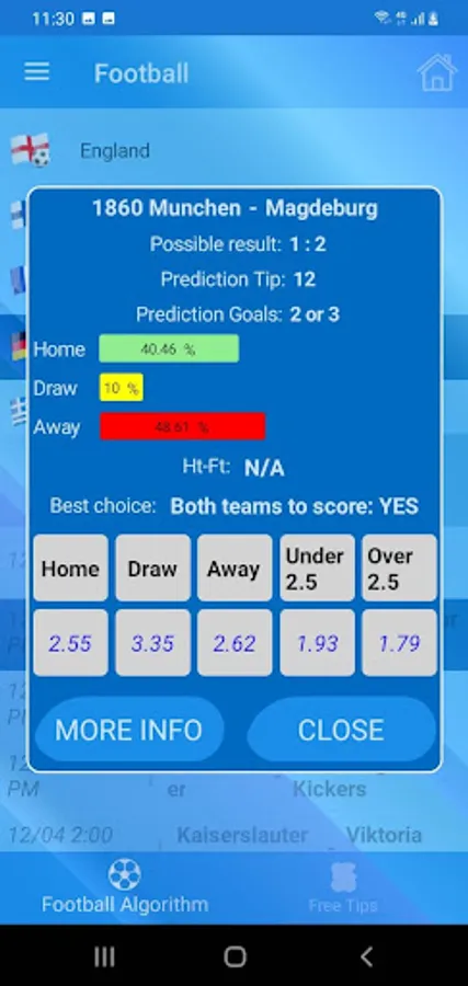 In addition to all of these predictions for one match, a message for each match is always the best bet for the selected match. Or it's NO BET a message.