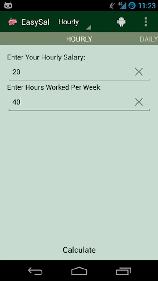 EasySal Calculator is a simple salary calculator that calculates ones salary based on United States money. This application can calculate hourly, daily, weekly, biweekly, monthly and yearly wages.